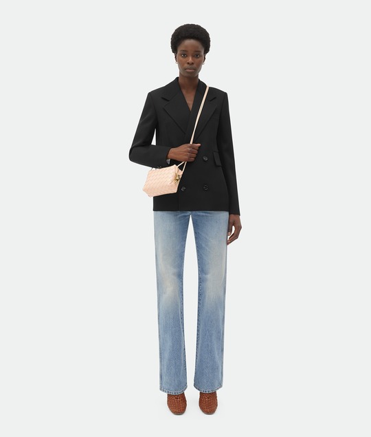 Loop 迷你相機包風格簡潔而日常,采用 Intrecciato 編織小牛皮制作,兩側配有金屬紐結裝飾。