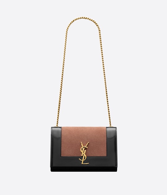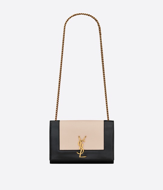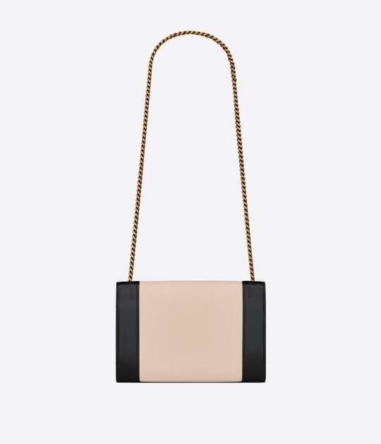 Kate 小號肩背包以拼色風格亮相,采用焦糖色麂皮、奶茶色或白色納帕小羊皮制作翻蓋,黑色或紅色亮面小羊皮拼接邊框等包身細節,有如古典畫框般優雅精致。