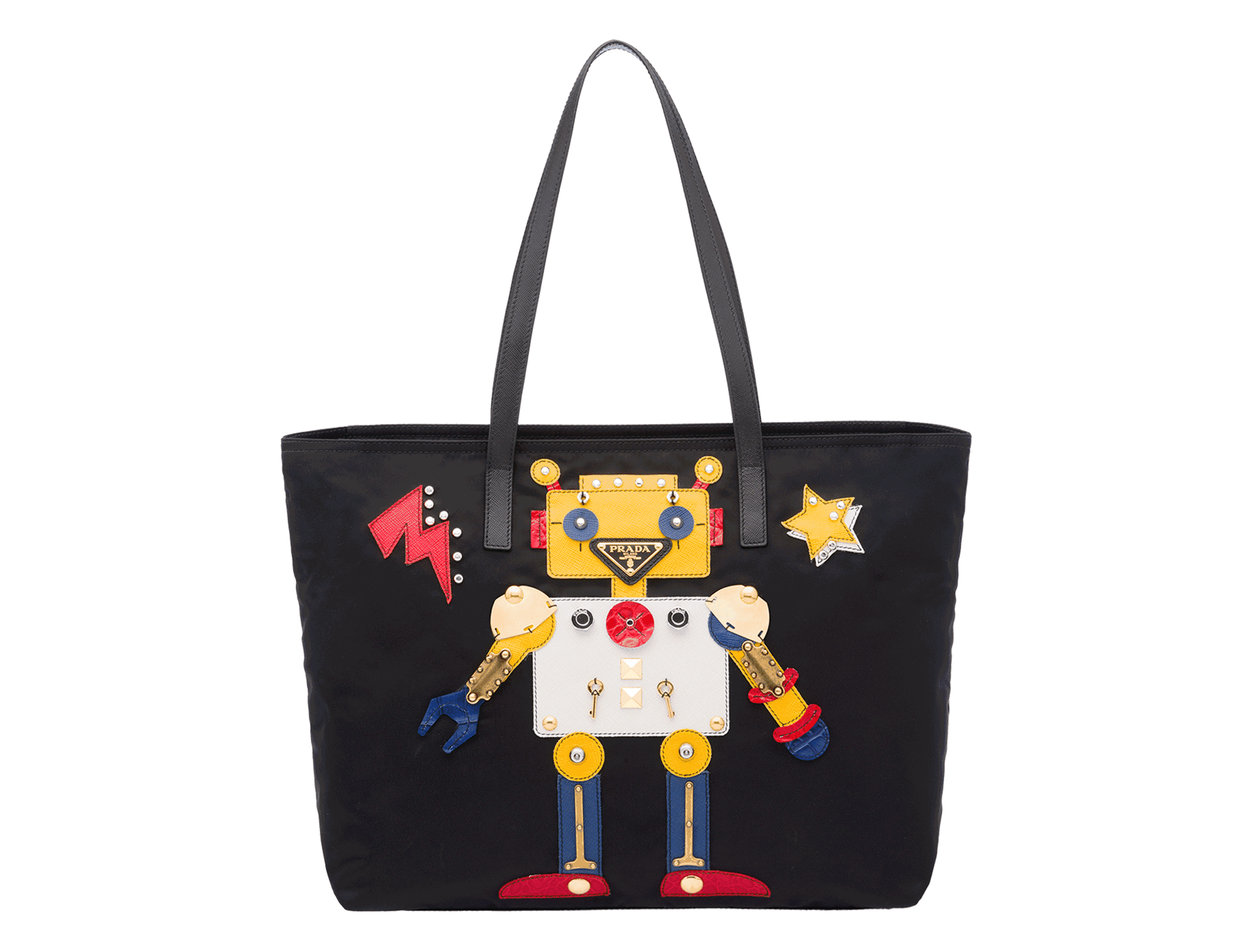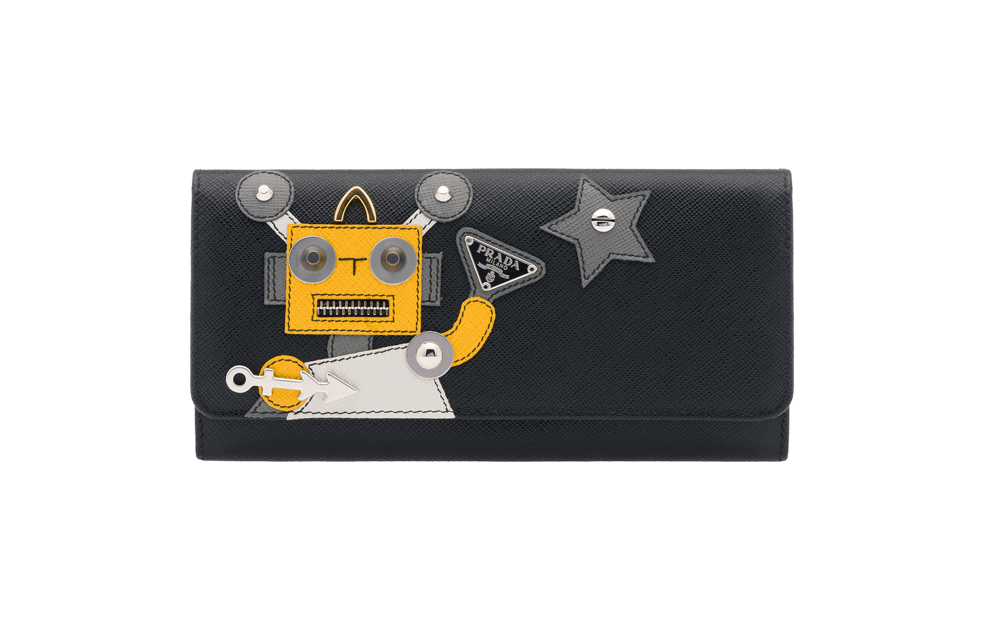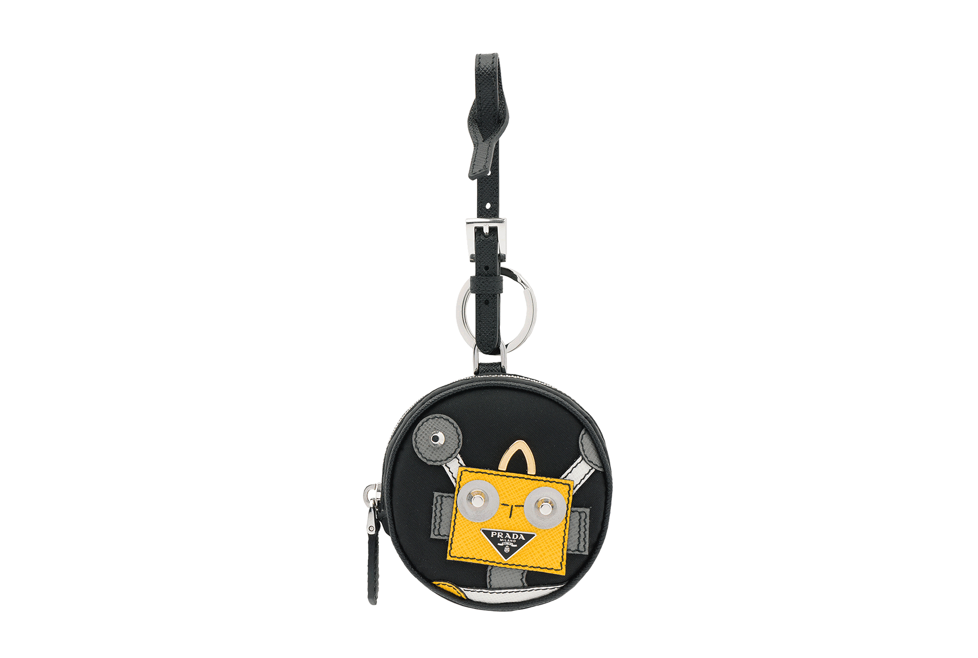 Prada全新膠囊系列設計靈感來自品牌最具標志性的機器人掛飾系列。此系列將Prada品牌部分最受青睞的款式重新詮釋:加入叛逆反諷而妙趣橫生的設計改動,例如采用白鞣小牛皮制造的Pattina手袋,以及采用織物面料的帆布背包與購物包,并提供多種顏色款式選擇。采用黑色saffiano皮革制作的皮夾,以及同樣以saffiano皮革為材質的鑰匙環、硬幣包等一系列配飾,則可與該系列的其他設計完美搭配。
