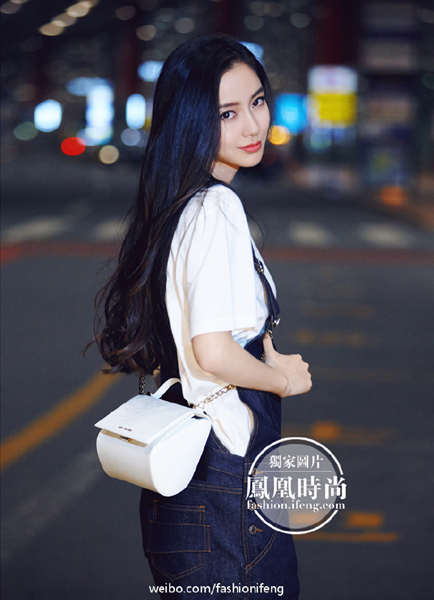 Baby則身著背帶褲搭配Pandora Box鏈條包甜到不行。
