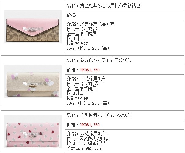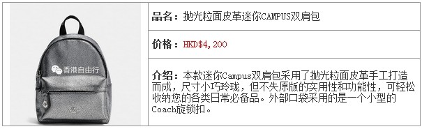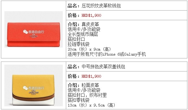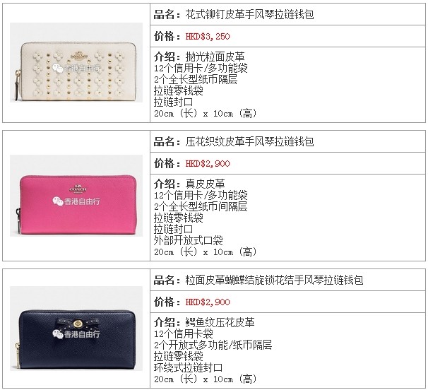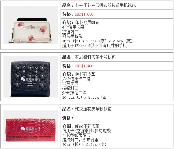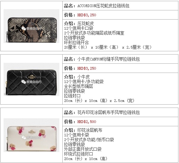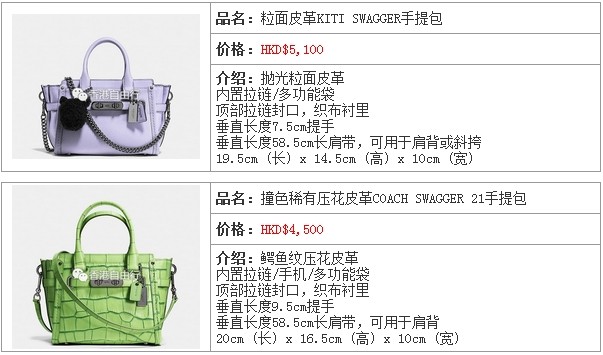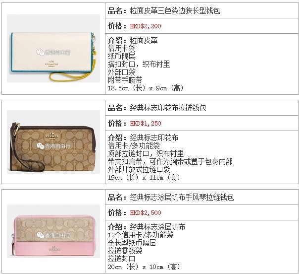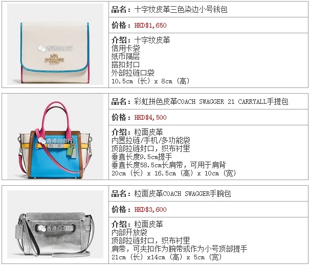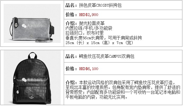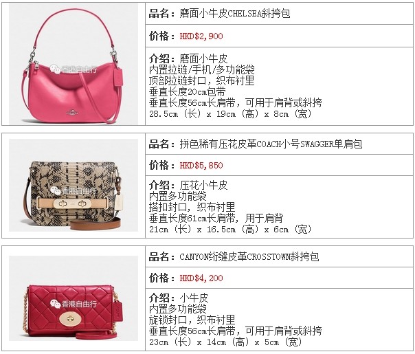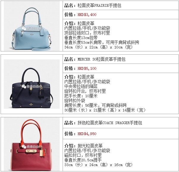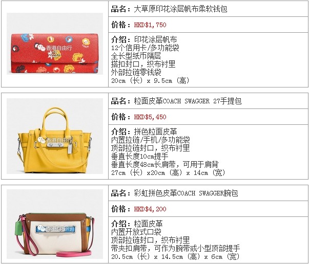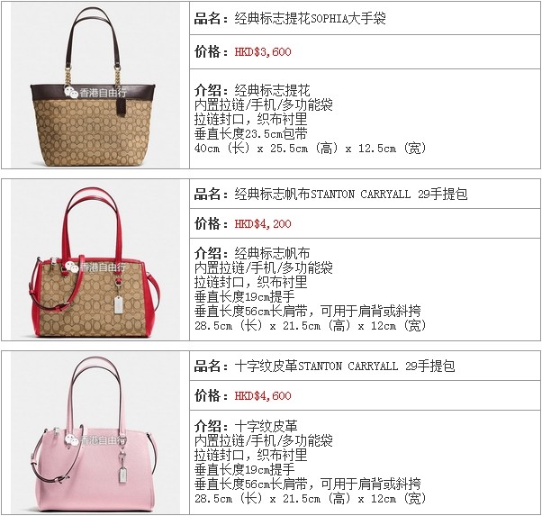 ↓COACH(報價) 其他系列產品香港專柜報價↓