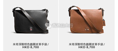 時裝界聯乘停不了!75歲的COACH(報價)和比自己年長13歲的米老鼠來了一次聯乘,包括米奇老鼠皮具和tee,有兩只大耳朵的真皮手袋看起來超搶眼的!系列不僅限于手袋,還有t恤、機車皮衣、運動鞋、雙肩包等等。