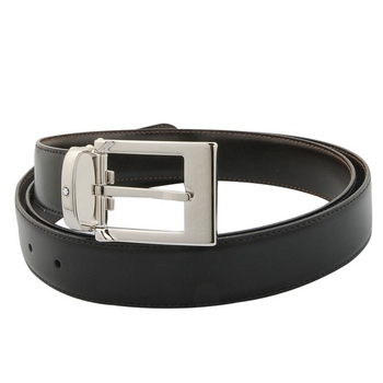 MONTBLANC 男士鍍鈀金針扣雙面牛皮腰帶(黑色/棕色雙面皮帶)。表扣矩形造型,側面飾小波紋,純黃銅材質,表帶是優質小牛皮,觸感一流,高貴典雅,斯文沉穩,流露內斂的貴族氣質。