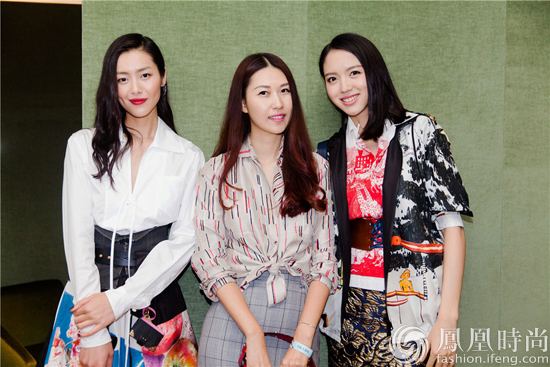 現(xiàn)場最為吸睛的要數(shù)產(chǎn)后以絕佳狀態(tài)復(fù)出的世姐張梓琳,張梓琳以一襲水墨風(fēng)印花外套搭配意式宮廷風(fēng)包裙,全場臉上都洋溢著少女般的幸福笑容,產(chǎn)后好身材恢復(fù)的速度令人驚嘆。超模劉雯以白色襯衫搭配復(fù)古印花長裙亮相,疊搭風(fēng)格的腰封造型格外搶眼。