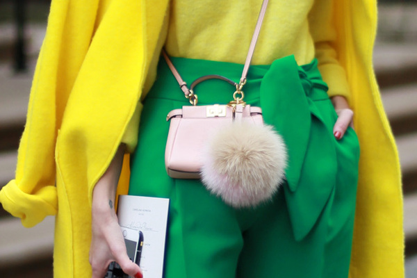 或者綁個絲巾,再土豪點,掛個水貂毛FENDI吊墜……