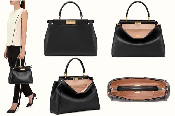 在最初,peekaboo的設計并不像現在這樣變化多端。FENDI的peekaboo追求別致精簡且永恒的外觀,通過手工技藝來揭示其高貴的靈魂;FENDI的雙重性則通過其含蓄和意想不到的內飾展現:外觀與內飾形成對比的色調和不同的紋理,手袋可通過旋轉金屬扣關閉或打開,而FENDI的 LOGO就刻在金屬扣底盤兩側,清晰可見。打開Peekaboo手袋,露出內袋拉鏈和LOGO標志。而合起來,你并看不到任何一處的LOGO,這種小心思,直擊女人心,滿足了女人既想裝bi又不想過分張揚的訴求。