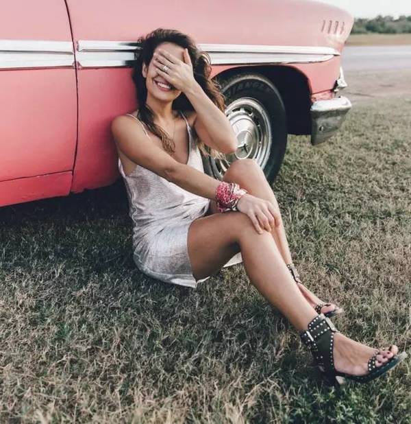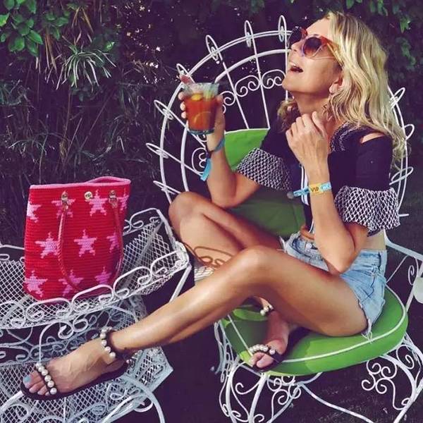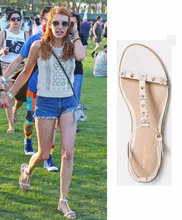 Emma Roberts在音樂節(jié)上穿了一雙Coach小花朵和小鉚釘裝飾的T字型涼鞋,有點小清新。▼