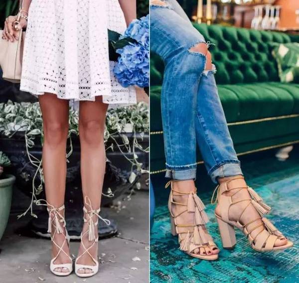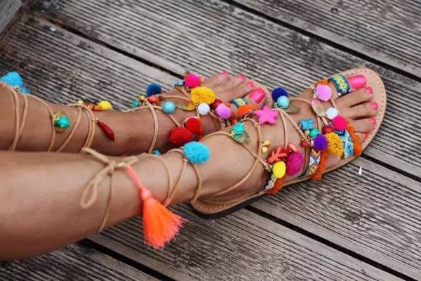 華麗風大行其道,性感纏繞的lace-up涼鞋加入各種各種彩球、穗飾等。