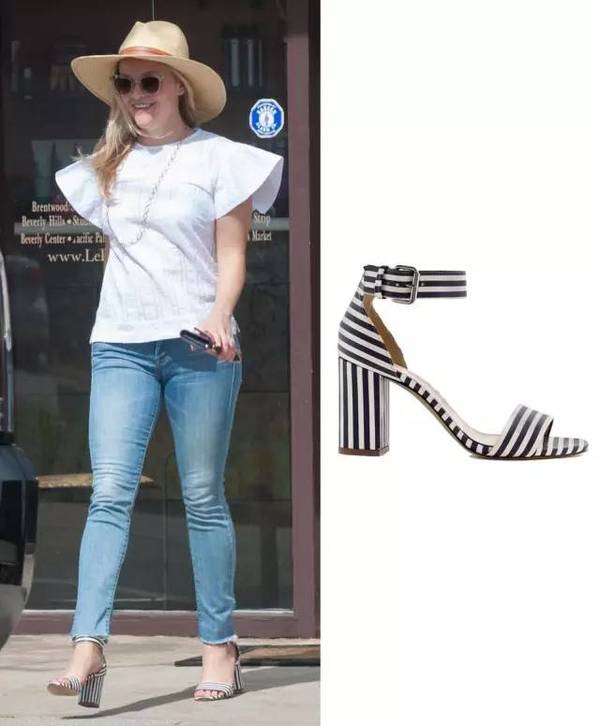 方臉影后最近穿了一雙J Crew的條紋一字帶,還蠻有夏日風情,可惜衣服沒挑對,有點顯胖~▼