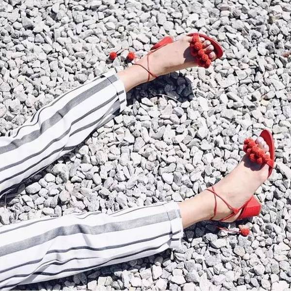 還有在鞋子系帶上動手腳,加上細長的蝴蝶結(jié),有點小優(yōu)雅,下面這雙是Alexandre Birman Clarita Sandals。我個人并不喜歡,但蠻多明星模特穿的~▼