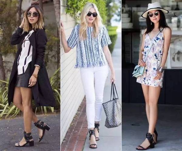 我們?nèi)ツ暾f過顯得腿長的丁字涼鞋,也有很多鉚釘款,鉚釘多了,叛逆氣息就重了。搭配普普通通的衣服都能穿出小個性。▼