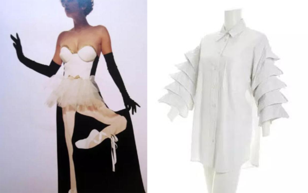 他還會在衣服胸前綴上精巧的小茶杯剌繡圖案,把短外套鑲滿菱角,以樹熊玩偶制作帽子,利用男士領帶縫制迷你裙。還有,衣服背面清楚標明價錢等等怪招,荒誕的念頭層出不窮。他甚至以垃圾袋制成晚裝,只為了宣告他的“cheap and chic”!