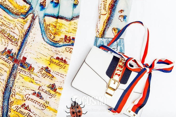 Gucci Sylvie手袋依舊采用了Gucci標(biāo)志性的條紋織帶,羅緞質(zhì)地的,摸上去和看上去一樣美好,而且其配色與包身上的羊毛織帶配色正好呼應(yīng)。