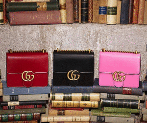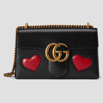 Gucci marmont 系列的同朝向雙GG logo設(shè)計(jì)顛覆了以前Gucci給人們留下的老氣的印象,成為了Gucci新的標(biāo)志性Logo,將復(fù)古和時(shí)髦融為一體。