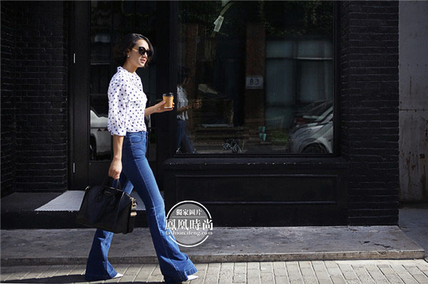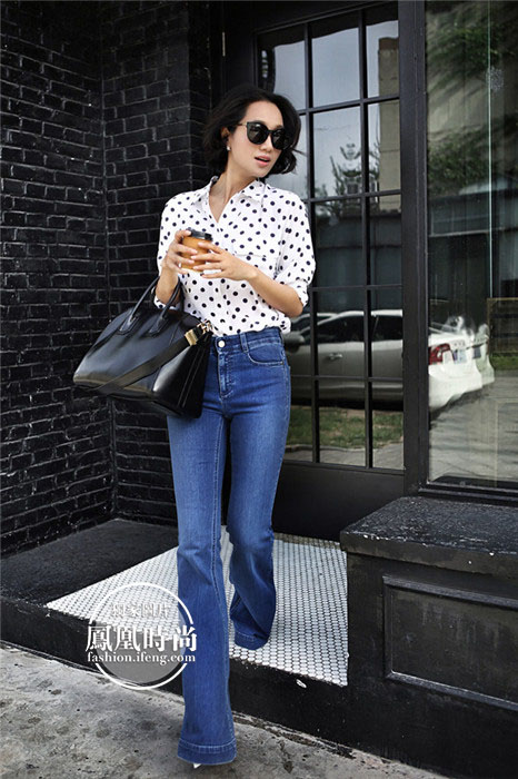 話說現在流行跨界,就連Wuli超超超一線女主播朱丹不僅跨界演戲,都開始變身職場OL了,波點襯衫搭配牛仔喇叭褲,干練之余又帶點小清新元素,所 以OL風不影響減齡這件事是真的。微喇高腰及地牛仔褲在展現其大長腿優勢的同時,更將朱丹個性中的的自由、灑脫表現得淋漓盡致。