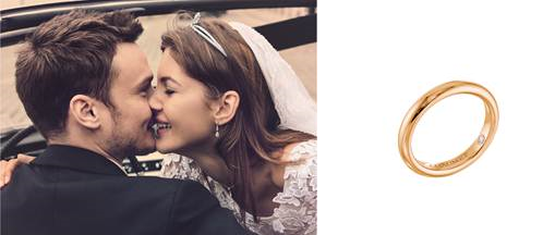 Fidélité系列婚戒,玫瑰金材質(zhì),內(nèi)圈中鑲嵌1顆隱藏的明亮式切割鉆石