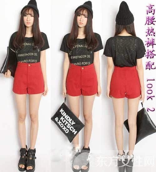 時尚點評:簡約時尚的紅色高腰褲非常的搶眼,束腰提臀的設計也非常的顯腰身,搭配黑色T恤,形成一種視覺上的沖擊,低調時尚又不失小女人氣質。