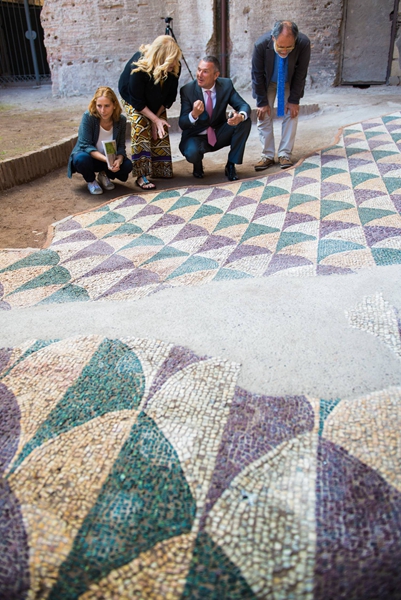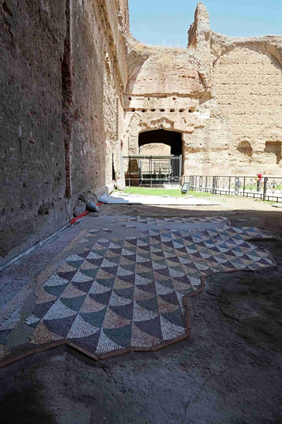 卡拉卡拉浴場彩色馬賽克地磚修復工程現場