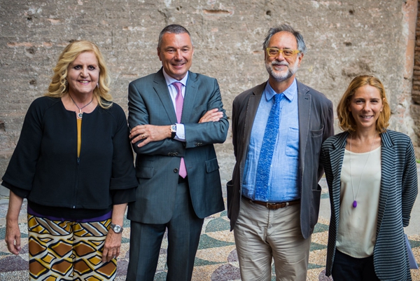 (自左至右)卡拉卡拉浴場總監Marina Piranomonte、寶格麗首席執行官Jean-Christophe Babin、羅馬斗獸場及羅馬古城監管負責人Francesco Prosperetti、修建者Anna Borzomati