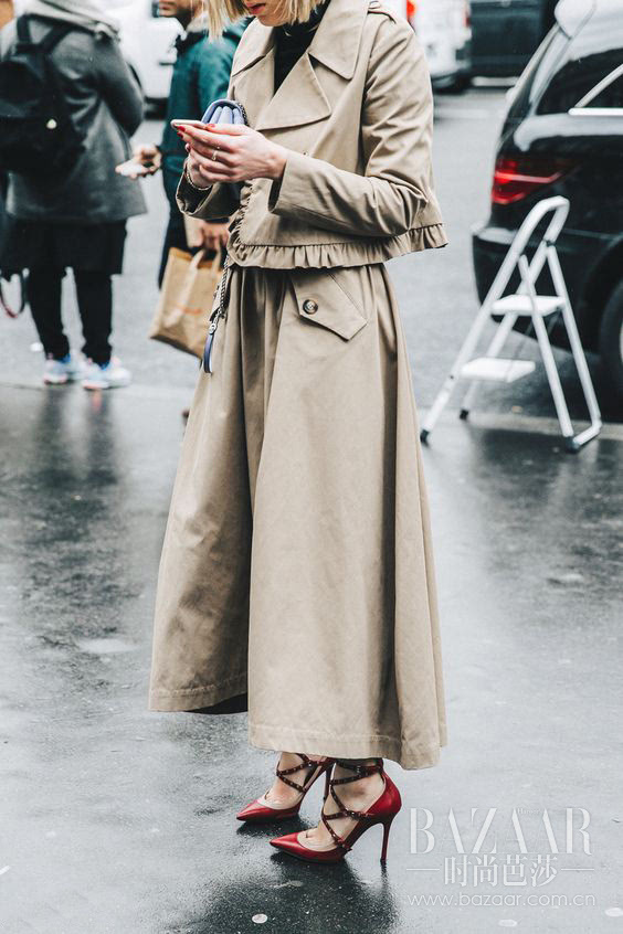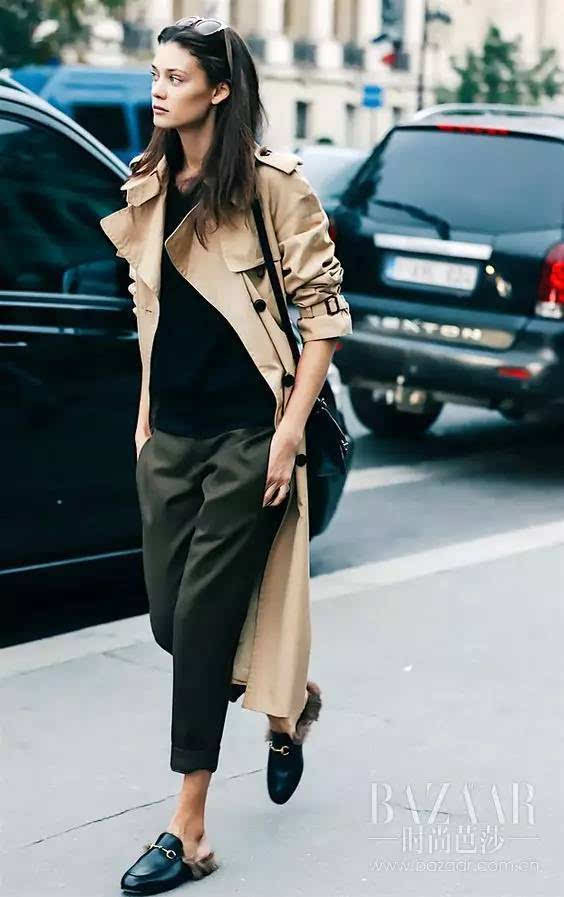 最經(jīng)典的卡其色雙排扣風衣,無論長短,每個時裝精手里都有一兩件吧?它的神奇之處在于無論搭配什么當下新潮的新品都不會格格不入,即使是慵懶的毛毛拖~