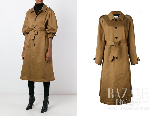 夸張的廓形感是這兩年最受歡迎的剪裁之一,與經(jīng)典的風衣相碰后,這對CP從此在時尚圈開天辟地~