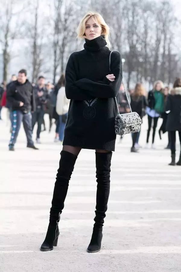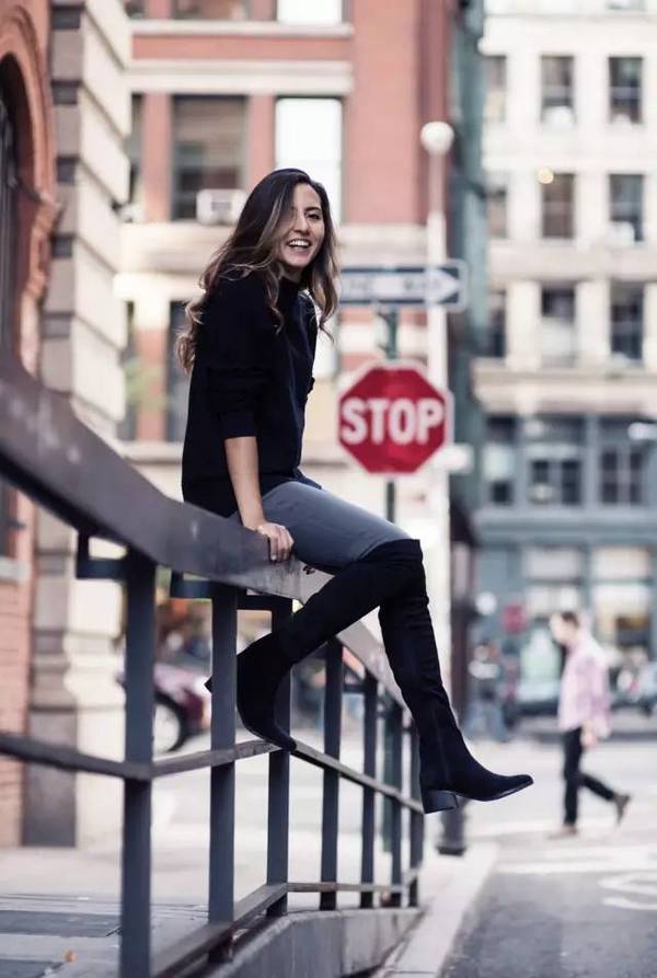 不說及膝靴,光說長靴二字,我便是滿腦子的白富美標配-SW5050。但也感謝這雙靴子告訴全世界,及膝靴有多么萬能,百穿不厭,皮的絨的各來一雙..反正身邊沒少死忠粉,天氣稍冷就拎出來臭美的,我已經審美疲勞了..還是給大家介紹同樣百搭的及膝靴吧
