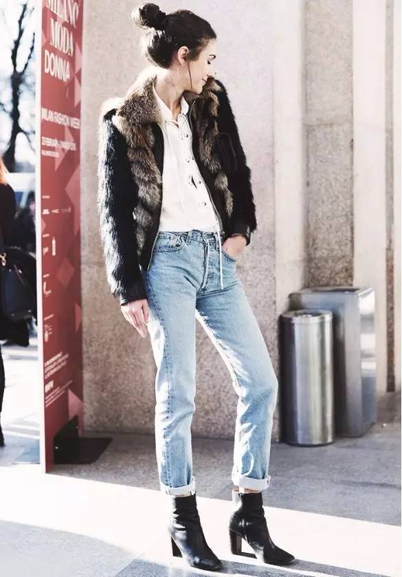 像霉霉那么高的女生還要穿大高根款裸靴,不讓人好好活下去的氣焰不知道你感受到了沒有..反正我是已經被燒傷了。最佳搭配也是此類黑色緊身褲加一雙黑色裸靴高跟,完全是在光天化日之下利用搭配來拉長腿。