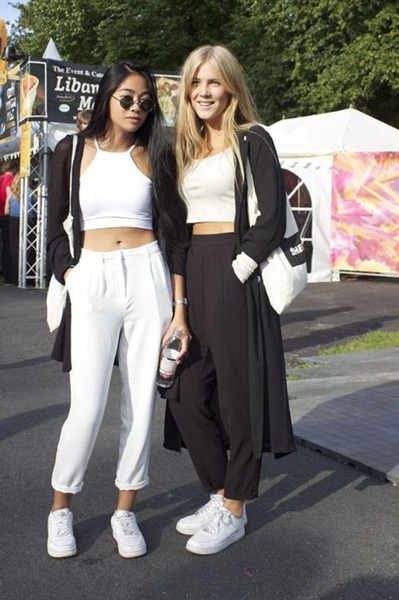 最經典的運動裝當然是整套的運動裝,就像Gigi和國美小姐演繹的這個范,短上衣是區別常規運動服的小心機。