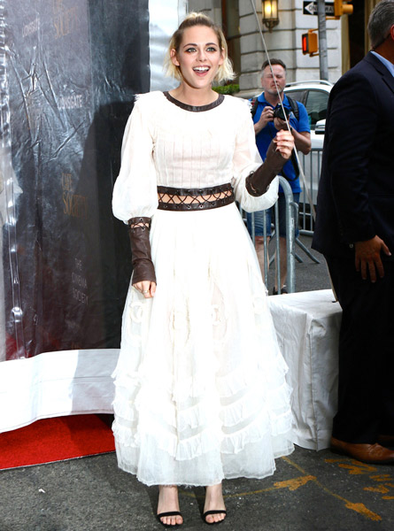 暮光女Kristen這身Chanel白色荷葉邊紗裙,拼接了皮革的紗裙,娘man平衡得剛剛好!腰間的鏤空設計,初秋換季這樣來表"露"自己,小心機滿滿的!