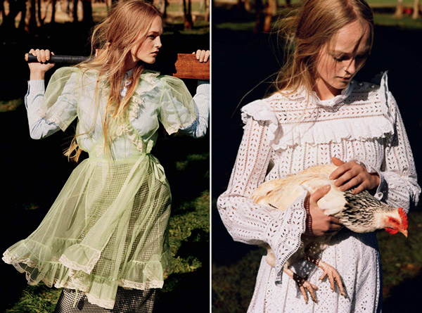 Jean Campbell為《Vogue》拍攝的內頁,宮廷式設計的抓褶裙,演繹淳樸自然的氣質少女。