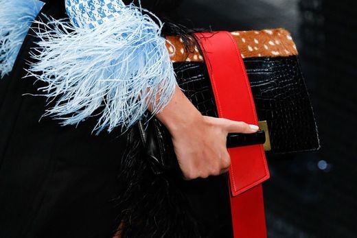 除了衣飾,其實手袋系列同樣吸引,模特兒們捧著顏色繽紛的手袋,不同圖案與布料的混搭再襯上毛毛細節,手袋的吸睛度絕對不遜于衣裳!