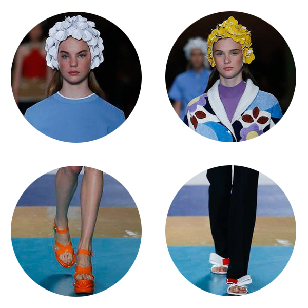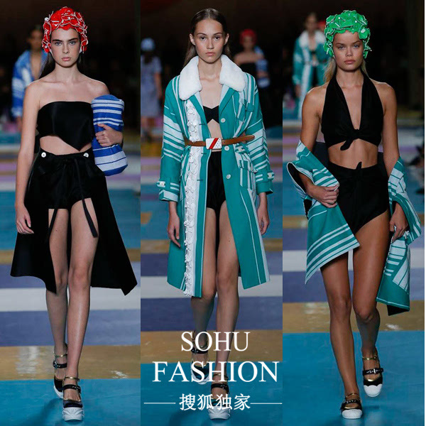 準備好去度假了嗎?Miumiu連防曬服、雨衣、浴帽都給你準備好啦!幾乎調色盤上所有的顏色都做成了浴帽,花朵的形狀層層疊疊,金屬色彩的厚底鞋,多彩的蝴蝶結拖鞋,性感的比基尼,讓人忍不住希望夏天快快到來,還不快快減肥,來一場浪漫的度假之旅吧!
