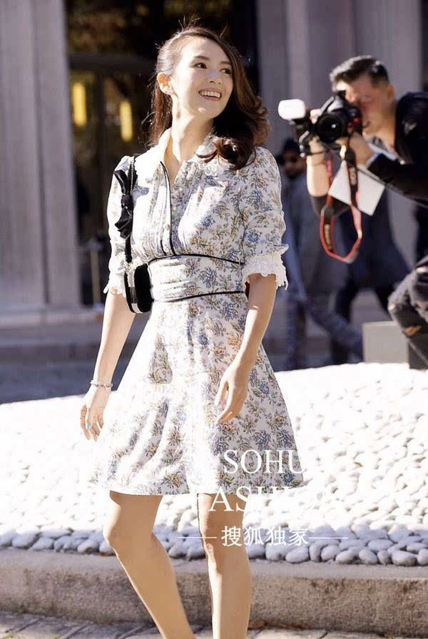 章子怡作為當天的壓軸明星亮相miumiu 2017春夏大秀現場,一襲定制款小碎花連衣裙清新十足,完美的身材和極具親和力的笑容,瞬間變身18歲少女,簡直不要太美。