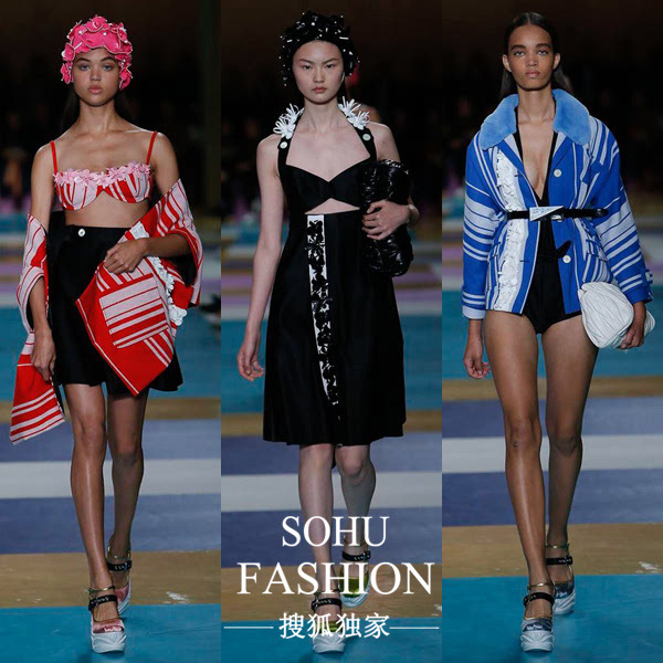 Miu Miu女孩們又有新衣穿了,2017春夏系列滿滿都是少女們的度假風,明亮的色調,條紋格紋多變的印花,皮革、針織以及類似塑料等多種材質的拼接組合,彩色的拖鞋和金屬質感的厚底鞋,美得令人心醉神迷,就連辣媽章子怡也被吸引到了現場看秀,作為巴黎時裝周的壓軸女明星,醒醒媽的清爽的造型讓人眼前一亮,搖身一變成了少女,簡直不要太美好嘛。