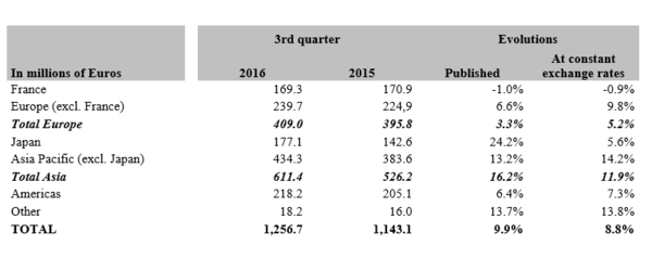第三季度銷售額為 12.6億歐元,高于分析師預計的 12.2億歐元,按實際匯率計算,同比增長 9.9%;按不變匯率計算,同比增長 8.8%