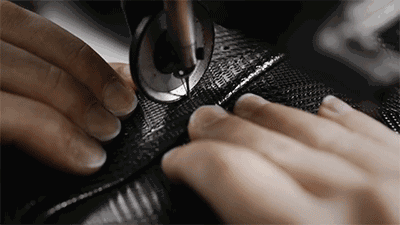 工匠用尼龍線在鞋面上進(jìn)行機(jī)械縫紉,精細(xì)的針腳展現(xiàn)了精湛工藝,再加工塑形,使皮革更加柔韌。這是一項(xiàng)完全依賴直覺(jué)的操作。