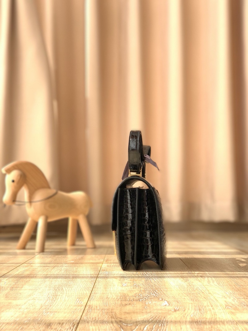 • Hermes constance系列 愛馬仕康康包 純手工定制鱷魚皮 黑色