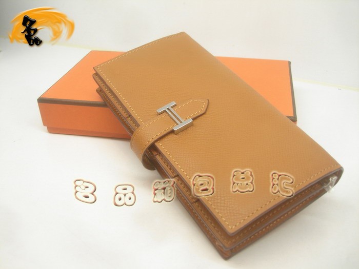 - 愛馬仕 Hermes最新款 原版皮女士長款錢夾 十字紋女包 Hermes錢包 淺啡色